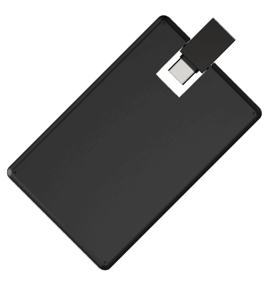 Our Ace USB Memory Card is a unique USB flash drive shaped like a credit card and features dual USB connectors, making it a versatile and convenient solution for all data storage and transfer needs. The Ace USB Memory Card comes with two USB connectors – a standard USB for traditional USB-A ports and a USB-C connector for USB-C ports This design lets users easily switch between connectors with a simple swivel of the USB, ensuring it works with a wide range of devices, ideal for professionals on the go.